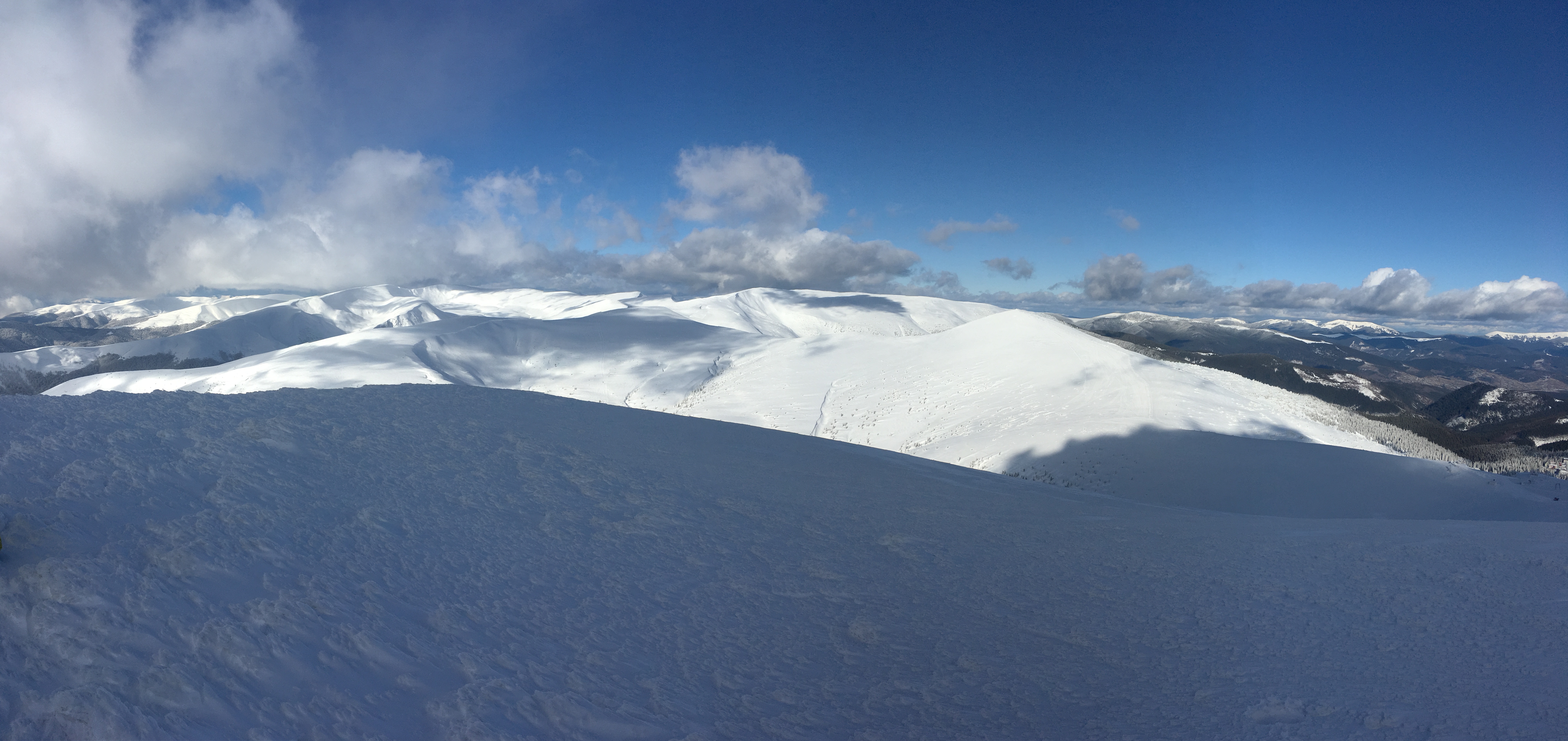 Ennek nagyon megörültünk és megkezdődött a kaland, amiért ennyit utaztunk. A ratrak hátsó részére egy ketrecet applikáltak fel az ukránok, a két szélén és az elején van egy-egy pad, valamint állóhelyek is ki vannak alakítva, így 10-12 fő tud rajta utazni. A ratrak felvitt néhány perc alatt az egyik hegycsúcsra, majd onnan az instruktorok iránymutatása alapján elindultunk lefelé a szűz hóban, ami azért néhol jeges volt, az elmúlt napokban tapasztalt erősen szeles időjárás miatt. De így is óriási volt az élmény! Csak az a 10 fő volt ott, akiket a ratrak hozott, senki mással nem találkoztunk fent a hegyen. Gyönyörű részekre jutottunk el, és néhol azért volt kihívás is a lejutásban. De két instruktor (egy a sor elején, egy a sor végén) vigyázott ránk végig. Snowboarddal és freestyle síléccel is szuper volt jönni lefelé ezeken a lejtőkön. Összesen 6 kört mentünk, ezzel el is telt a délután, majd beültünk új kedvenc helyünkre, az Oaza étterembe, hogy méltóképp zárjuk a dragobrat-i kalandunkat. Még biztosan visszatérünk…