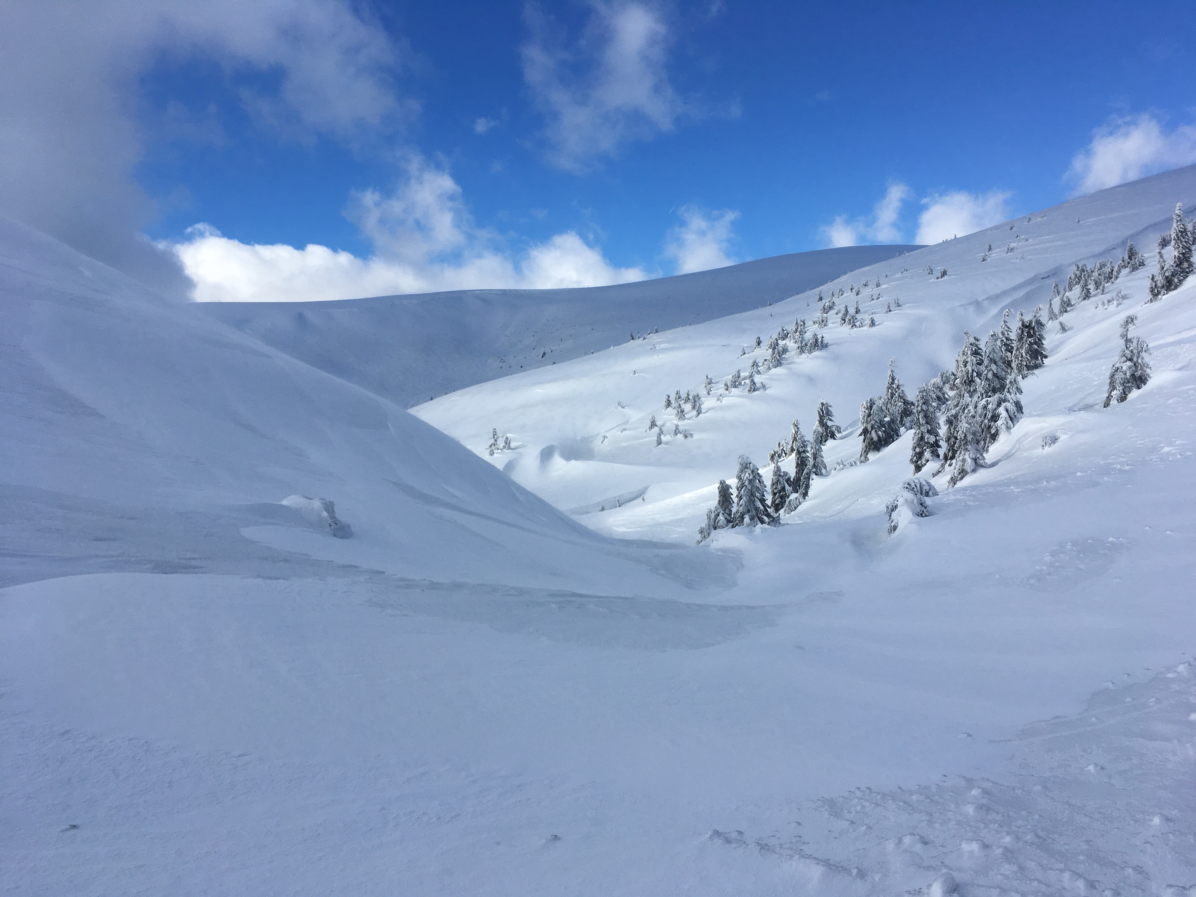 Sajnos első nap az idő nem fogadott minket a kegyeibe, viharos szél, havas eső és minimális látótávolság a köd miatt. Délutánra a lifteket is leállították. Mivel másnapra hasonló volt az előrejelzés, így eldöntöttük, hogy egy napra átmegyünk Bukovelbe. Ott déltől este 7-ig csúsztunk és nem okozott csalódást. De utastársaim elsősorban a freeride kaland miatt jöttek, így bíztam benne, hogy utolsó napra összeszedi magát az időjárás és felpattanhatunk a ratrakra…